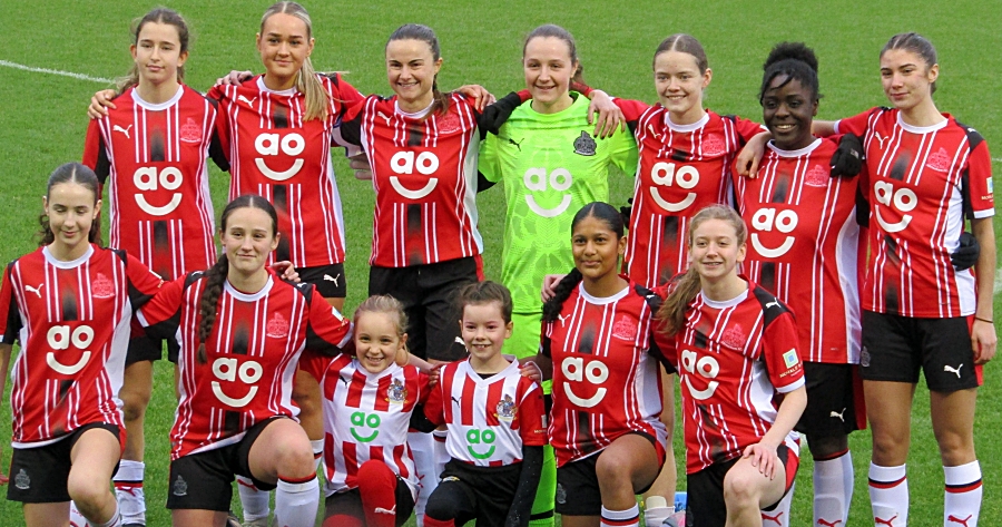 ALTRINCHAM FC WOMEN: 1. Amber Kerr, 2. Irey Bamigboye, 4. Evie Chard, 5. Bliss Molyneaux, 3. Emma Gleave, 6. Jade Hesketh (c), 8. Tayla Simms, 7. Brogan Walsh, 10. Beth Hayes, 11. Maya Germain, 9. Laura Kelly. Subs: 10. Victoria Griffiths, 12. Megan Rowley, 13. Natalie Thornley, 14. Aimee Hopkinson, 15. Megan Price, 16. Gail Simpson-Scott