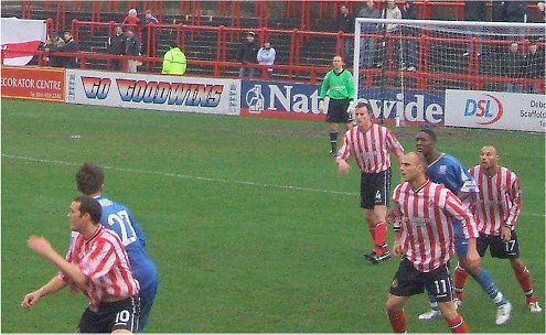 Rushden kicked off the second half but the first excitement of the second period came after 49 minutes when Thornley put in an excellent dipping shot which went only narrowly wide of Tynan's left post. Thomson continued to get little change out of the Rushden defence but a quick clearance from Coburn set Thornley advancing on the left and from Peyton’s resulting cross, Alty won another corner, on their left (52 mins). Aspinall's corner came to Thornley who sliced his shot wide. At this stage neither side looked particularly threatening until O'Neill got past Hatswell into the edge of the box only to be brought down. Whilst there may have been some doubt about whether it was a penalty or a freekick on the box-edge, the home fans and management were astounded when Mr. Pawson gave neither and waved play on (56 mins).