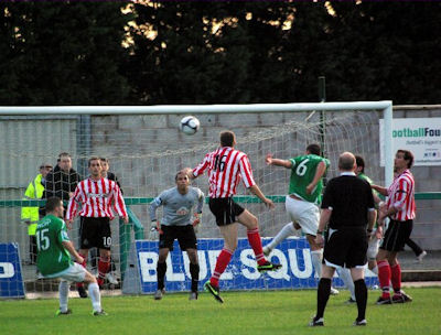Vics were now improving and Connor fired in a shot which just cleared the Alty bar. Chalmers was then tripped by Herring, who was booked, friendly or no friendly, by Mr Bristow (20 mins). The freekick was laid off to Crowell who shot wide. Vics went close in the 24th minute when a freekick was fed to Burns who lashed a shot at goal with great power, which Saunders did well to beat away for a corner (24 mins).
