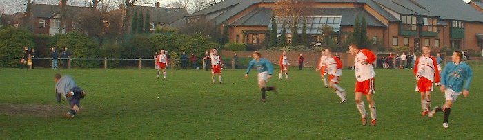 Alty Youth deservedly gained a last gasp 2-1 victory away to St Helens Town yesterday. Kieran Lugsden scored both goals. His first came after 10 minutes and the second, seen above, was 3 minutes from the end. Kieran is far right in blue shirt, with Steve Lunt in centre-picture.
