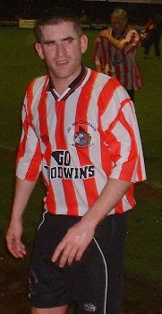 On Boxing Day 2002, at home to Droylsden, Alty wished their fans a Merry Christmas. Seen left to right were: 1. Richard ACTON, 2. Gary SCOTT, 3. Barry SHUTTLEWORTH, 4. Mark MADDOX (capt.), 5. Chris ADAMS, 6. Stephen ROSE, 7. Danny MURPHY, 8. Ian CRANEY, 9. Peter BAND, 10. Dave GARDNER, 11. Sean SMITH. Subs: 12. Jason GALLAGHER, 14. Andy McDONALD, 15. Andy TUNNICLIFFE. Only 6 of the 15 above (Scott, Shuttleworth, Adams, Rose, Craney and Band) were involved this Boxing Day.