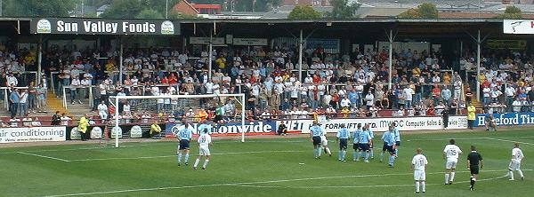 The website adds that "the referee made another important decision which once again meant that Altrincham kept eleven players on the pitch. Stansfield got the better of Gary Talbot when battling for a long ball over the top and Stansfield got ahead of the defender, only to be pulled to the ground just outside of the box. Talbot was the last defender and still the referee failed to produce a red card". This occurred after Band had been clearly pushed in the back by Stansfield so justice was done! The website ends generously, " In truth, Altrincham rarely troubled the home side but did look to be a decent outfit. If they continue to perform like that they should have no problems in staying in this division although they may need a little more firepower in attack. There were many good performances from Hereford players in what was probably their second best performance of the season".