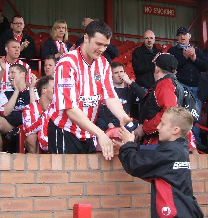 Emotional scenes greeted the final whistle as Alty players and supporters saluted each other at the end of a season which should have ended in celebration at the magnificent feat of survival as a part-time side with the lowest budget in the Conference. Instead, the rejoicing was muted, as we have a massive points deduction hanging over us because James Robinson's previous club did not get international clearance for him. As a result, Altrincham do not know in which league they will be competing next season.