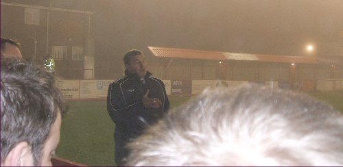 The Cambridge Evening News adds that "Jimmy Quinn has hit back at supporters criticising his leadership following Cambridge United's 1-0 defeat at home to fellow Conference strugglers Rushden & Diamonds. Several fans vented their anger at close quarters... He said: 'I know people get disappointed, but I was trying to talk to one or two, but they weren't up for chatting so I won't waste my time anymore. People don't know me yet at this place, but I've been passionate all my life and I played with passion and then people talk to you as if you're an idiot. Unfortunately, in this country these days there's a blame culture and they've always got to find someone to pick on, but I'll always stand my ground. If they want to talk about football, I'll talk to them but if they want to talk rubbish, I won't waste my time. I'm willing to talk to any fan about the situation here and I'll put them straight on it. Unfortunately, we aren't the Cambridge that were in the Championship a few years ago, we're the Cambridge that were second from bottom in the Conference when I got here. There has been slow progress, but I haven't got a magic wand so I can't wave it and bring a title-winning team overnight. It's going to take time'... [In their last game] Jordan Collins, 18, made his debut at left-back with Danny Brown suspended and Tommy Jaszczun injured and found praise from Quinn for his efforts".