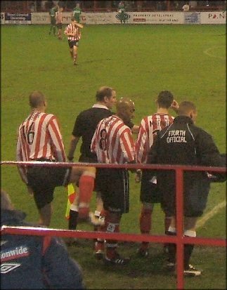 "Leigh RMI had a golden opportunity to confirm the victory late on, but the referee turned down the appeals of a seemingly definite penalty when substitute Kieran Lugsden [on 'loan' from Altrincham] was brought down by the Hucknall goalkeeper, only for Lugsden to be booked for diving when it appeared that he would have certainly scored had he not been brought to the ground when dribbling around the goalkeeper".THOMO