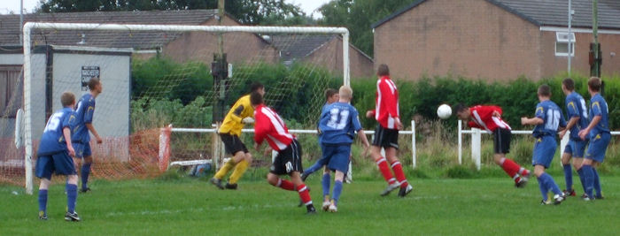Above: Alty defend a corner at Rushden. Alty deservedly took their first ever point at the Nene Stadium to halt Rushden's run of three successive wins and to lift themselves above Oxford United into 19th place.
