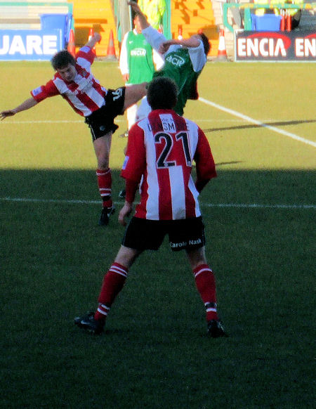 Above: Brodie's deflected freekick beats Coburn to put York ahead.