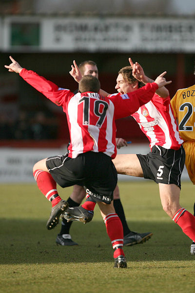 In the Sale & Altrincham Messenger, Graham Heathcote says "I haven't been happy with our general play in the past three games and it's just as well we've been right defensively or we wouldn't have picked up so many points. There seems to be an air of panic when we've got the ball and I can't understand that, for the life of me. If we are like that against Stevanage, we are going to be in for a difficult afternoon because they are playing with the confidence you would expect of a team unbeaten in 16 games. we need to relax a bit more and get back to the form, on our own pitch, that we were showing against the likes of Oxford, Mansfield and Wrexham".Referring to last Saturday, Graham added, "Some people seemd a bit worried about Accie (goalkeeper, Richard Acton) having to step in but I always felt the situation was made for him. When he is fully focused, he is a very good keeper and he was absolutely fantastic".