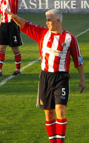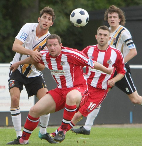 Anthony Danylyk, seen right in the match against Guiseley, during which he was sent off, will be suspended for one game from 12 September. He will therefore miss the away game against Solihull on 17 September.MONDAY GATES