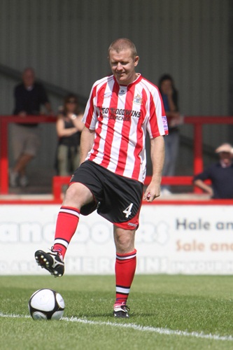 Mark is pictured, right, at his testimonial last week by Gavin Rathbone; visit his GR Photography site for more images including one of the former team-mates of Mark who joined him at Moss Lane after the Tranmere friendly.