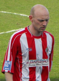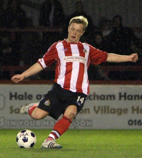 Lee Sinnott, the manager of Altrincham FC, reviewed his squad's availabilty after Thursday night's training and indicated that his left-winger, and latterly left-back, Nicky Clee (right) is "struggling" with badly bruised ribs, an injury he picked up at Bishop's Stortford, last week.