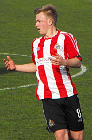 JAMES SIGNS EVOSTIK FORMSAltrincham midfielder James Holden (right) has signed EvoStik League forms with AFC Fylde. 25 year-old James, who remains registered with Altrincham for the BSBN, joined Altrincham two months ago following his third spell with FC United of Manchester. An Alty Reserve in his teenage years, James has acquitted himself well in three substitute appearances for ALtrincham this season but has not been able to command a starting place in Lee Sinnott and Neil Tolson's team. |