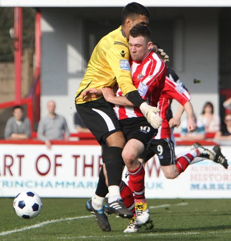 Boro’s six-point penalty for failing to register striker Andy Brown prior to the Colwyn Bay and FC Halifax wins in January has hit the club hard but Wilkin insists nothing has changed as regards the team’s play-off ambitions – he’s still aiming for a top-five place. Going into tomorrow’s home clash with fellow promotion hopefuls Altrincham, Boro lie seventh and just a solitary point above their Cheshire rivals, who will definitely be galvanised by Nuneaton’s misgivings.