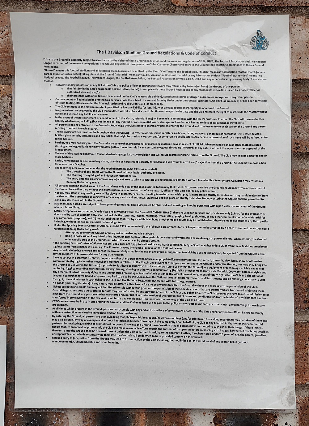- The Football Conference Ground Regulations