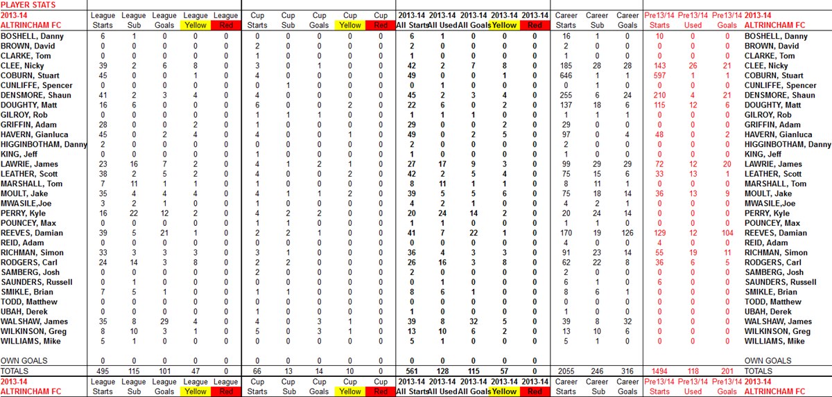 FIRST-TEAM PLAYER STATISTICS 2013-14