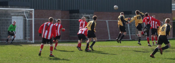 This game was played in bitterly cold and very windy conditions on a pitch made soft by rain in the previous 12 hours. The visitors started the better and won an early corner (3 mins). But there was little serious threat to either goal in the opening stages as the teams fought to come to terms with the difficult wind blowing across the pitch. From a kick by Alty keeper, Walker, the ball was relayed up the Alty middle to Madden, but his shot cleared the bar. Next, from an Alty freekick by Brownhill, Oliver headed over the bar (13 mins),