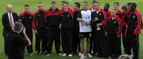Graham Heathcote explained the options open to last season's youth players. A small number will be invited to join the firstteam pre-season though they should not expect to bridge the gap from the NWYA to the Conference in the short term; patience and dedication were needed, he emphasised. He thanked all the players and their families for their efforts on behalf of the club and wished all of the lads well whatever their footballing future might be.